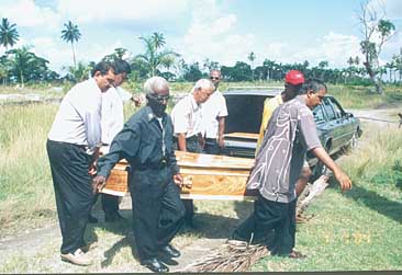 FUNERAL: relatives carry the