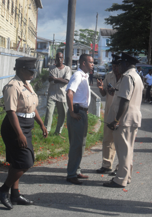 Students and supporters gather at the Wales Police Station to protest the killing of a 16-year-old student of Patentia Secondary School.
